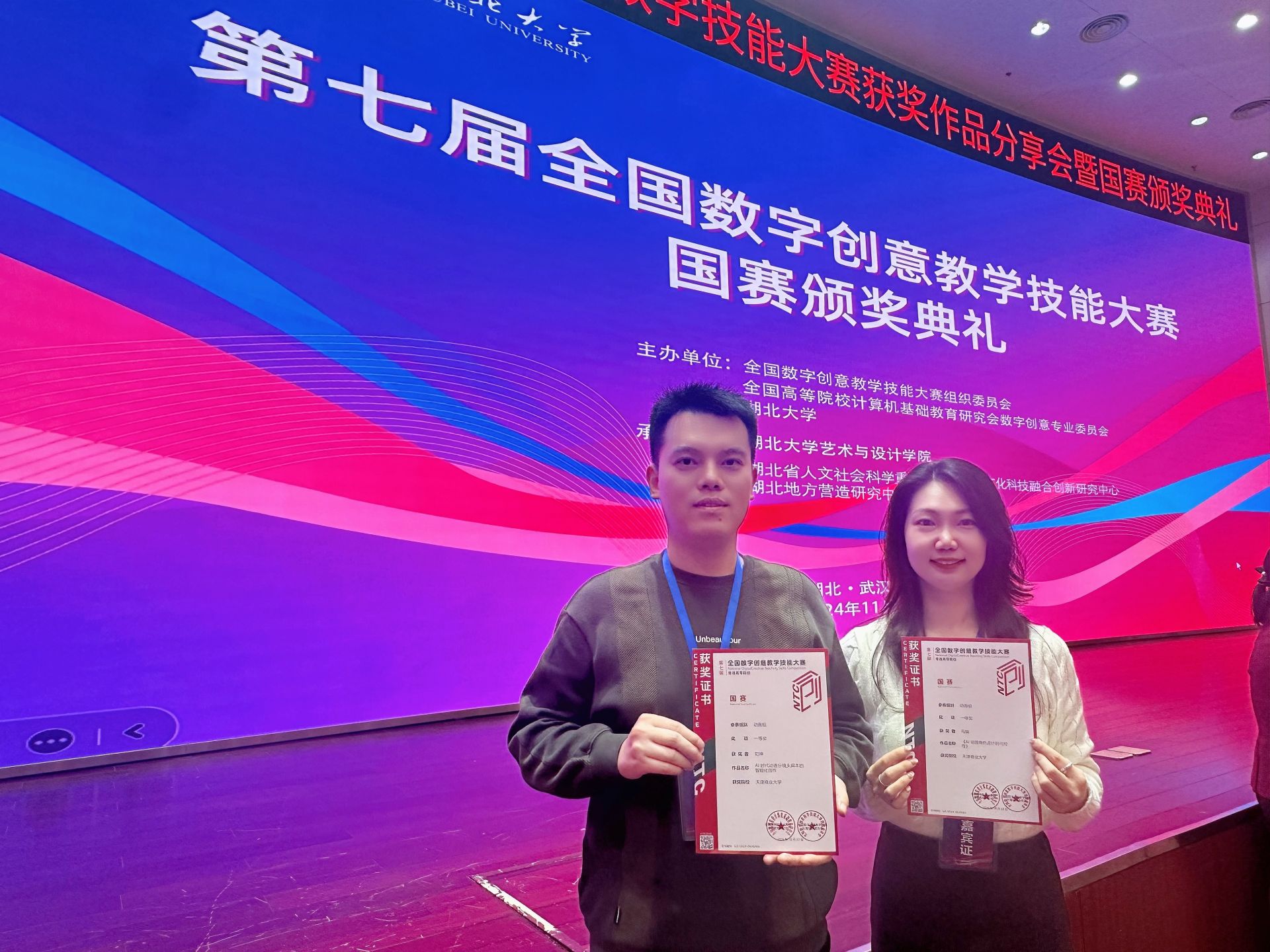 11月17日,第七届全国数字创意教学技能大赛颁奖典礼及获奖教师分享会在湖北大学举行。经过省级初赛和国家级决赛的严格评选,雷竞技RAYBET动画系马旗、刘坤两位青年教师荣获一等奖。