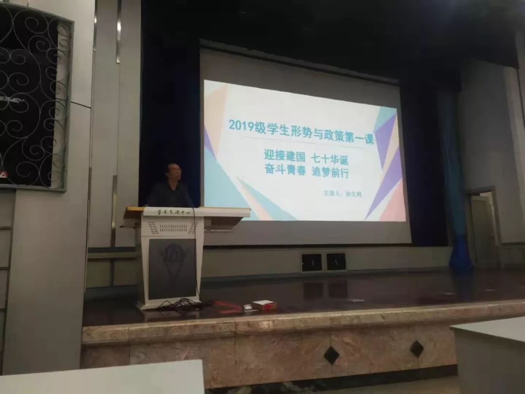 雷竞技RAYBET2019级新生开学典礼于2019年9月4日在学术交流中心举行。在开学典礼上党委书记孙文利为新生们上了开学形势与政策第一课。本次形势与政策课以“迎接建国,七十华诞;奋斗青春,追梦前行”为主题,以新中国成立70周年以来的几个大伟大历史节点为切入点,讲述了我们的祖国成立70周年以来,在军事、政治、经济、文化等取得的瞩目成就。要求2019级新同学们牢记习近平总书记对青年的殷切希望,坚定信仰,厚植爱国情怀,树立远大抱负,脚踏实地,开拓创新,乐观豁达,不怕逆境,把中国梦、青春梦、艺术梦统一起来,圆梦青春,圆梦新时代。